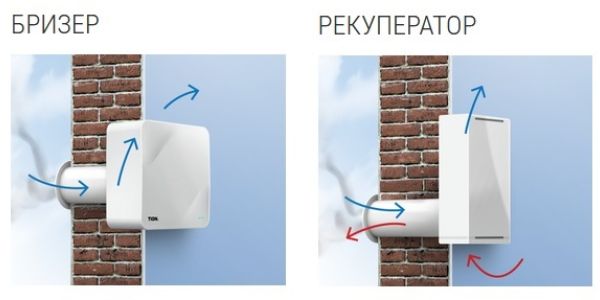 Бризер: более мощный вентилятор обеспечивает больший объём воздуха. Производительность может варьироваться от 20 до 300 м³/час.